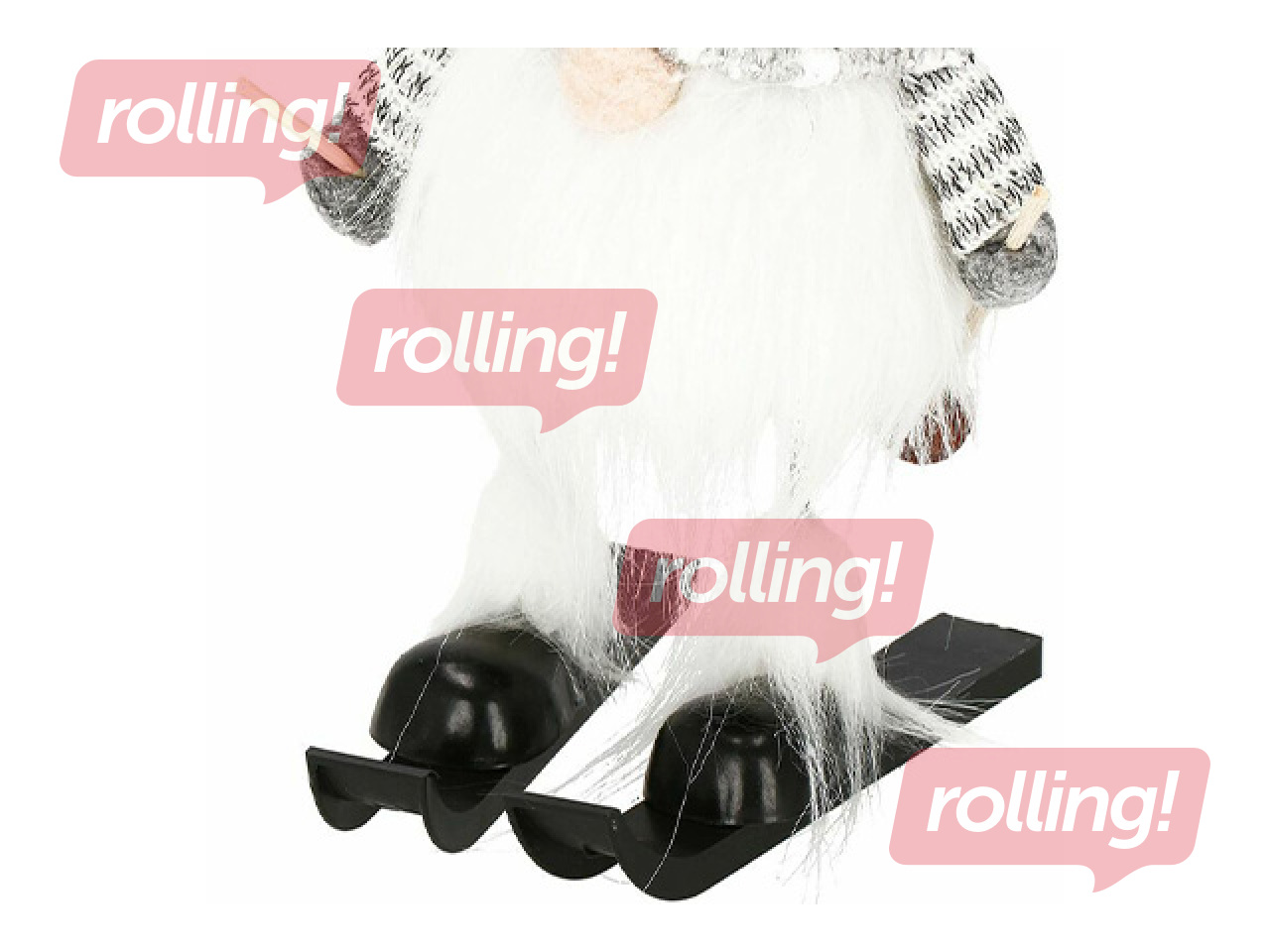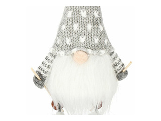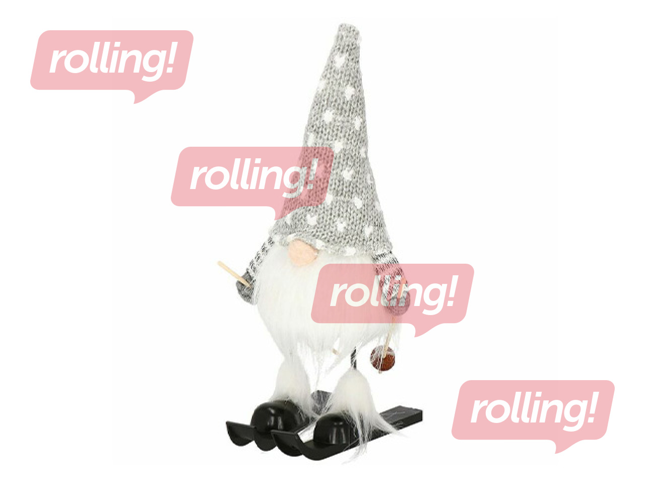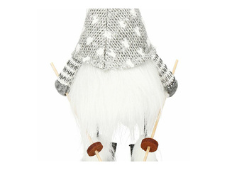 Burvīgs un oriģināls Ziemassvētku rūķītis ar slēpēm, kas piešķirs interjeram rotaļīgu un sirsnīgu svētku noskaņu. Rūķītim ir iebūvēta atspere, kas ļauj tam viegli šūpoties, radot iespaidu, ka tas slīd lejup pa kalnu. Detalizētais dizains ar pelēku cepuri, kuplu bārdu un sniegbaltiem akcentiem padara šo dekoru īpaši pievilcīgu.
