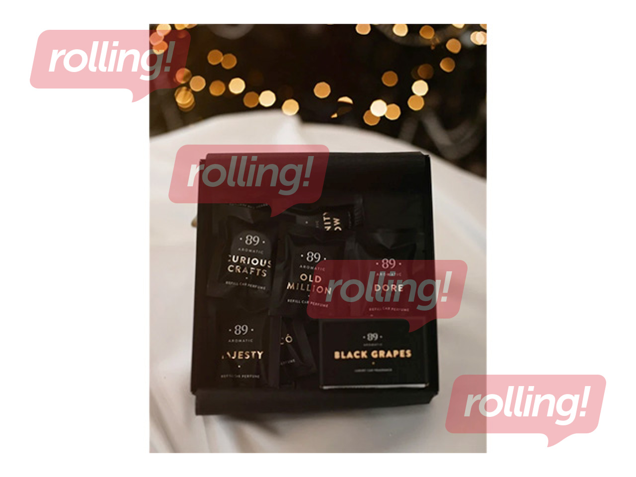 Komplektā ietilpst ventilācijas stiprinājums un 12 populārākie Aromatic •89• aromāti: Dore, Infinity Flow, Blue Nightingale, Inoop, Old Million, Majesty, Ohena, By Design, Black Grapes, Moroco, Curious Crafts un Staying Alive.