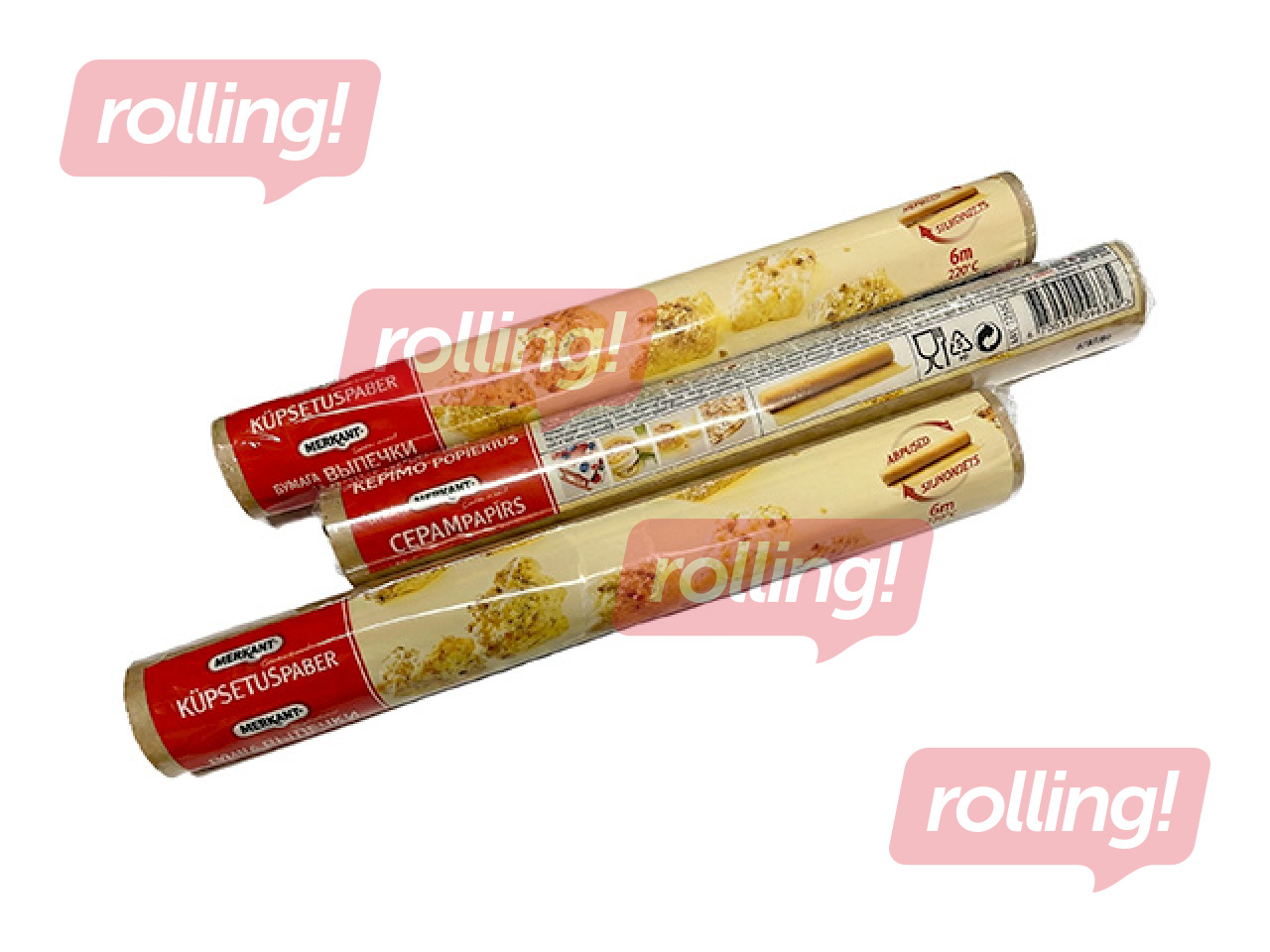 Praktisks un augstas kvalitātes Merkant cepamais papīrs būs ideāls palīgs cepšanai, gatavošanai cepeškrāsnī un ikdienas ēdiena pagatavošanai. 29cm platā un 6m garā ruļļa formāts nodrošina pietiekamu materiāla daudzumu vairākkārtējai lietošanai, novērš piedegšanu un atvieglo trauku tīrīšanu.