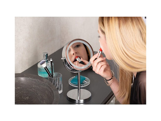 Tas ir divpusējs, ar vienu standarta un otru 3× palielinājuma virsmu, un aprīkots ar LED apgaismojumu (darbojas ar 4×AAA baterijām, nav iekļautas komplektā). Spogulis ir brīvi stāvošs ar stabilu pamatni, izgatavots no augstvērtīga hromēta tērauda, un tā izmērs ir Ø20×35cm, padarot to ideāli piemērotu lietošanai uz galda vai vannas istabā.