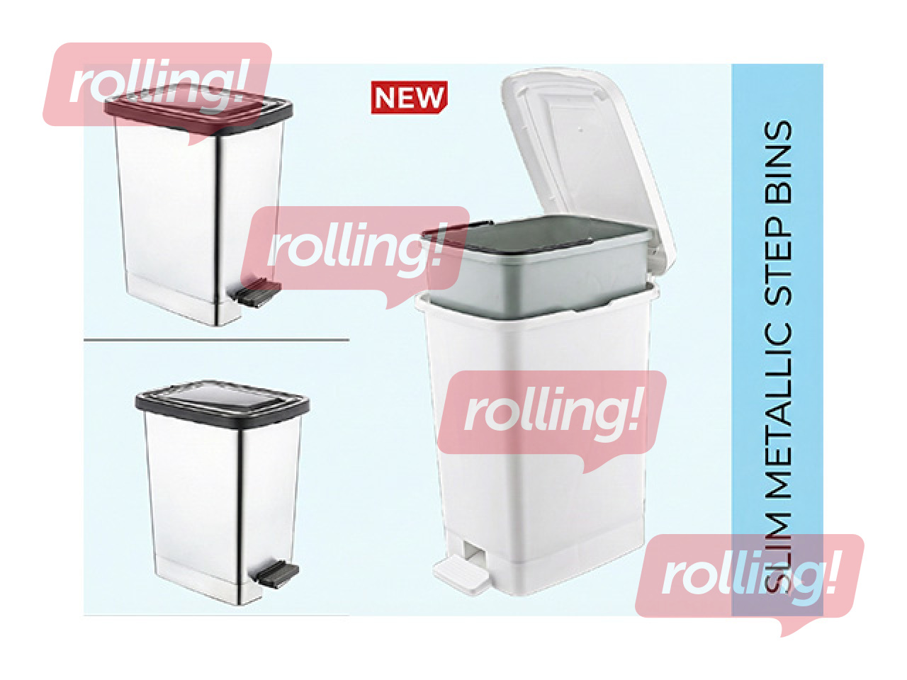 Atkritumu tvertne ar pedāli Ozer, Slim, metāliska, 15l