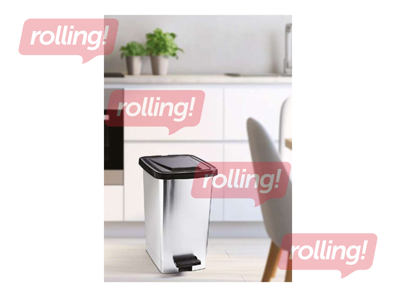 Tā ir izgatavota no metāliska tonī apstrādātas plastmasas (PP), nodrošinot izturību un vieglu kopšanu un ir ideāli piemērota mazām un vidējām atkritumu tvertnēm. Iekšējā tvertne ir izņemama ar rokturi ērtai tukšošanai un maisu nomaiņai, savukārt pedāļa mehānisms nodrošina higiēnisku atkritumu iemeti bez roku pieskaršanās.