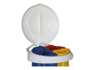 Atkritumu maisu turētājs Delta, ar riteņiem, vāku un pedāli, balts