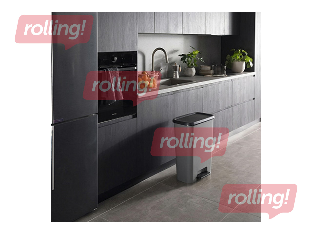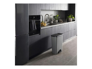 Konteineris atkritumu šķirošanai ar vāku un pedāli. Ērti ieliekams un izņemams atkritumu maiss, kas nostiprinās gar iekšējā konteinera malām. Konteiners nav jāslēpj skapī — to var novietot virtuvē vai saimniecības telpās, pateicoties mūsdienīgajam dizainam.