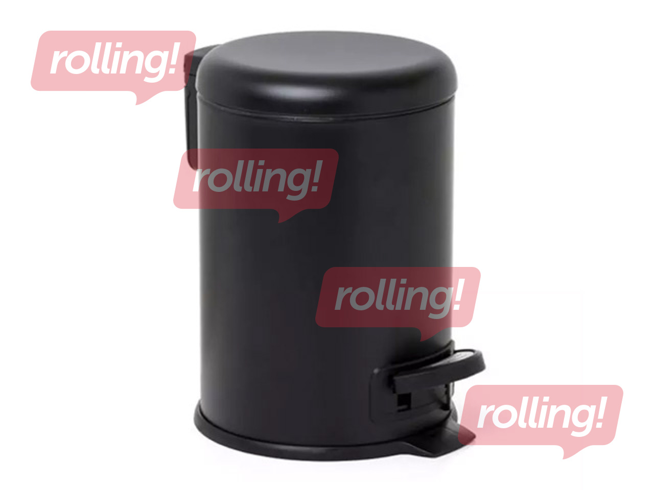 Atkritumu tvertne ar pedāli, metāla, melna, 3l