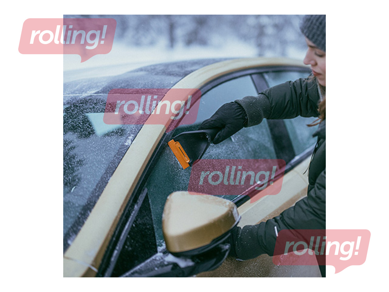 Divpusējs skrāpis ar cieto malu ledus nokasīšanai un mīksto malu ūdens, slapjdraņķa un miglas notīrīšanai.