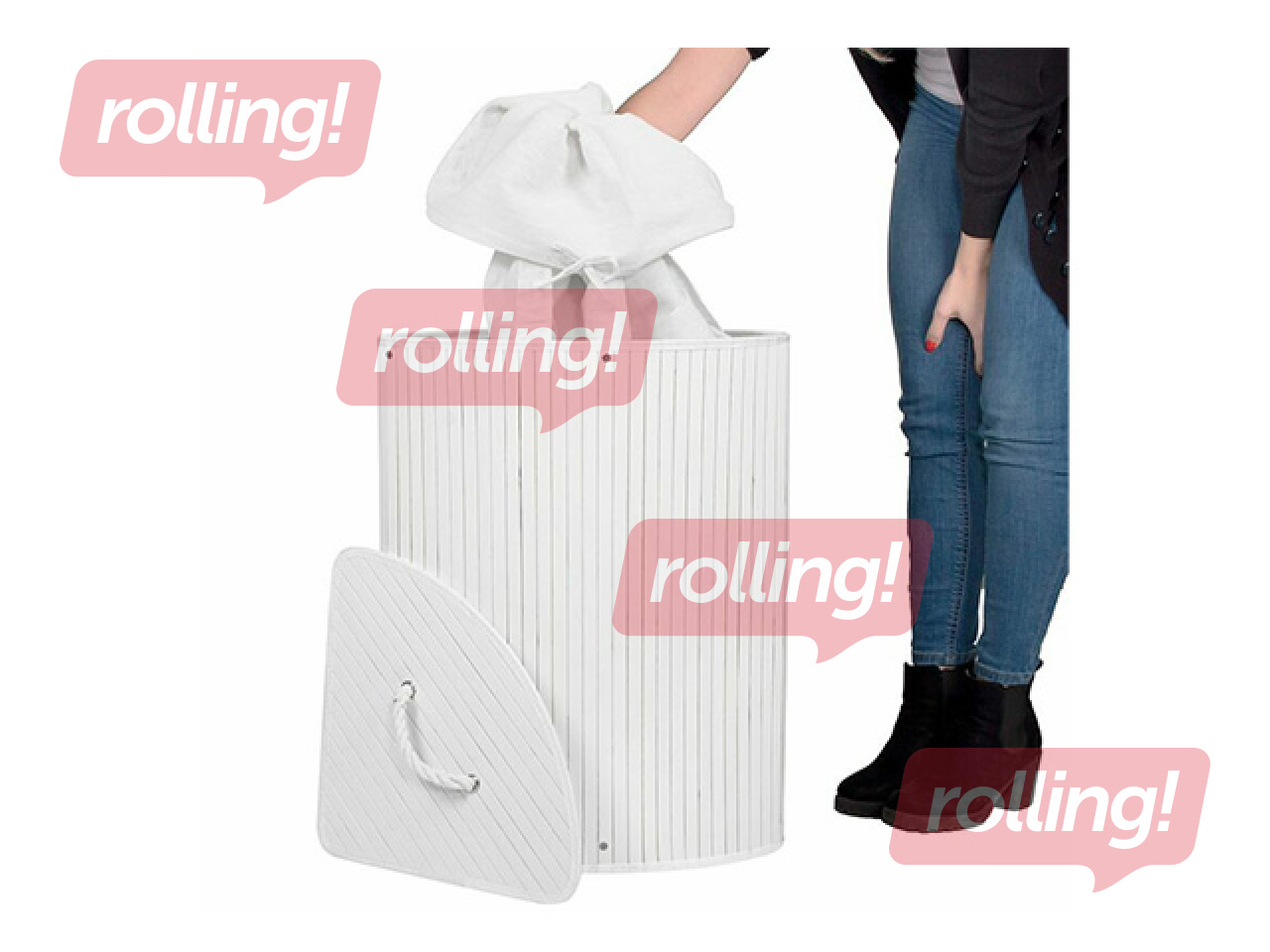Veļas kaste Springos, ar vāku, balta, bambusa, 73l