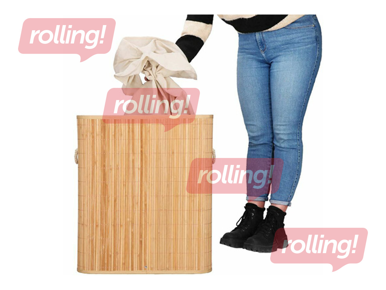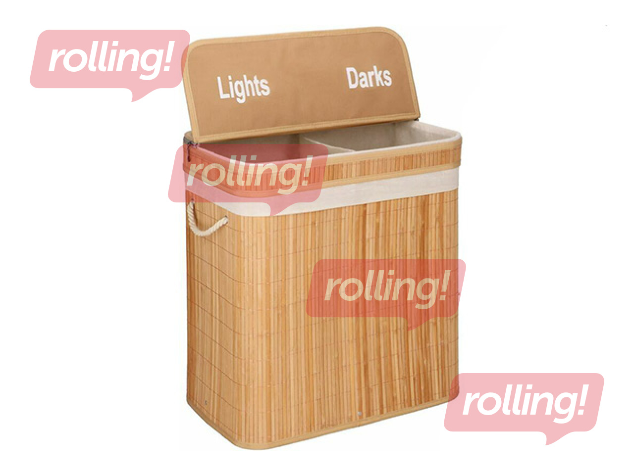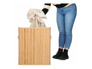 Veļas kaste Springos, divi nodalījumi, ar vāku, brūna, bambusa, 100l Salīdzināt