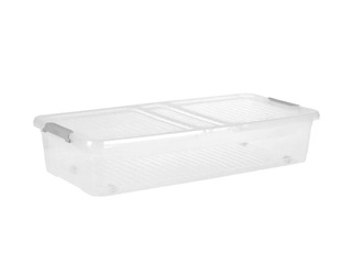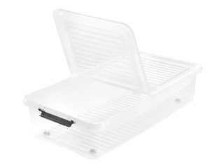 Vākus var droši aizvērt ar praktiskiem klipšiem. 90° ritenīši nodrošina elastīgu pārvietošanu un ļauj kasti ērti novietot zem gultām vai dīvāniem.