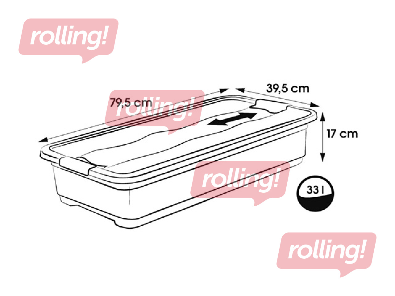 Uzglabāšanas kaste Keeeper Leo, ar vāku, uz ritenīšiem, caurspīdīga, 77x38x16cm, 33l