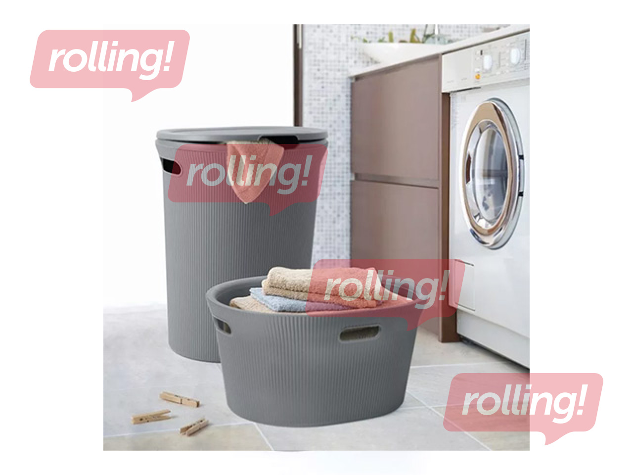 Veļas kaste Tatay Baobab, ar vāku, pelēka, 40l
