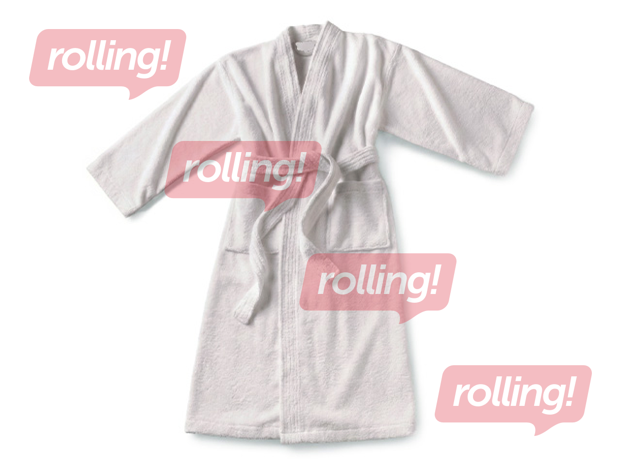 Frotē halāts, bez apkakles, balts, L izmērs