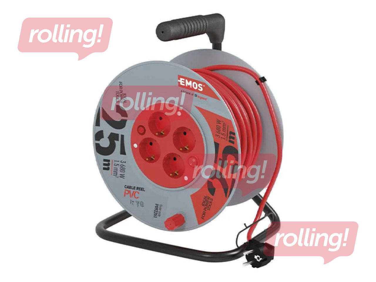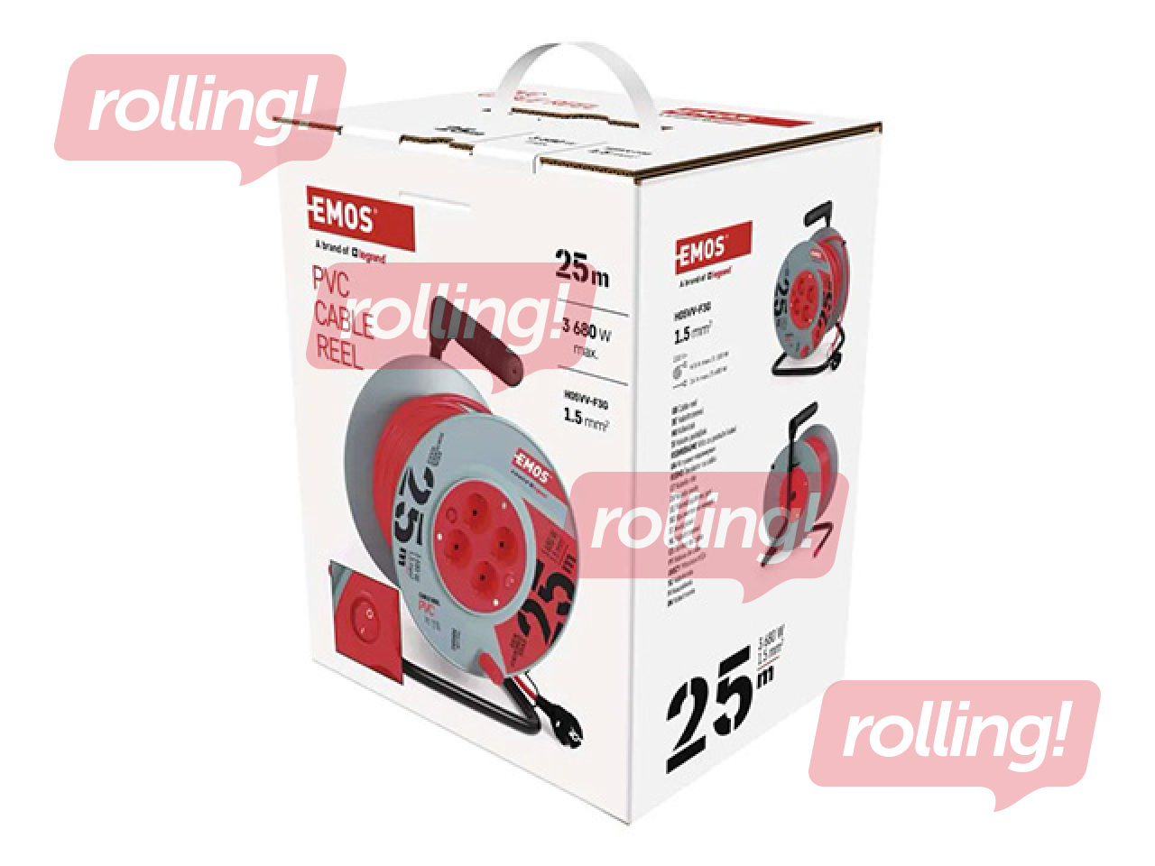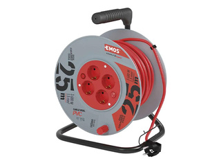 Pagarinātāja spole, 25 m / 4 kontaktligzdas / sarkana / PVH / 230 V / 1,5 mm2
