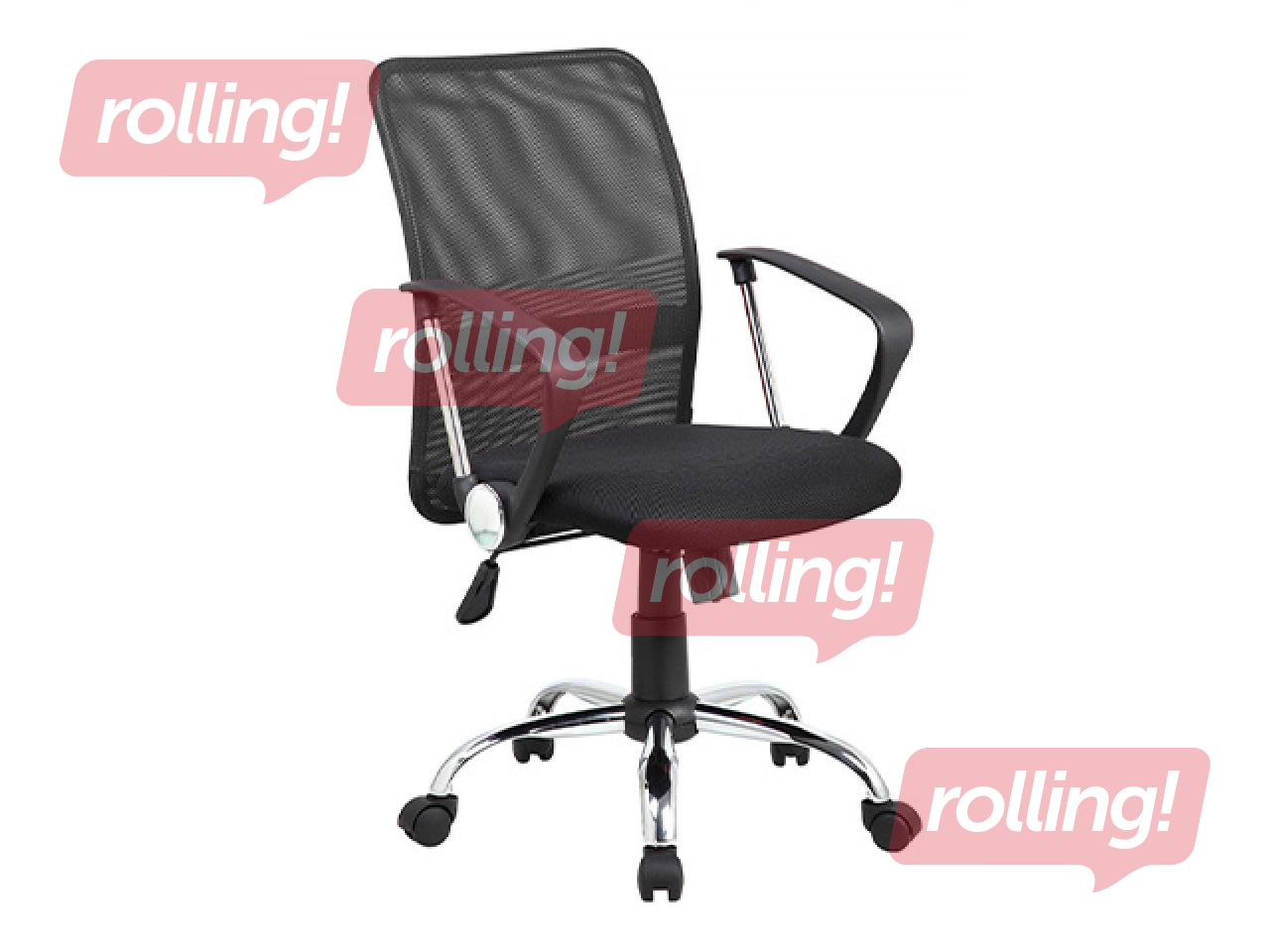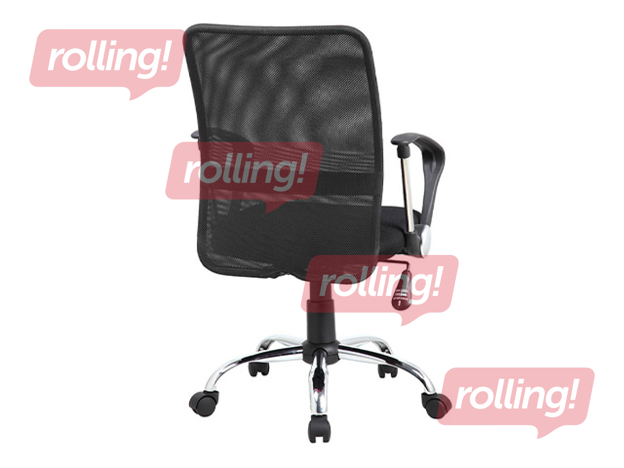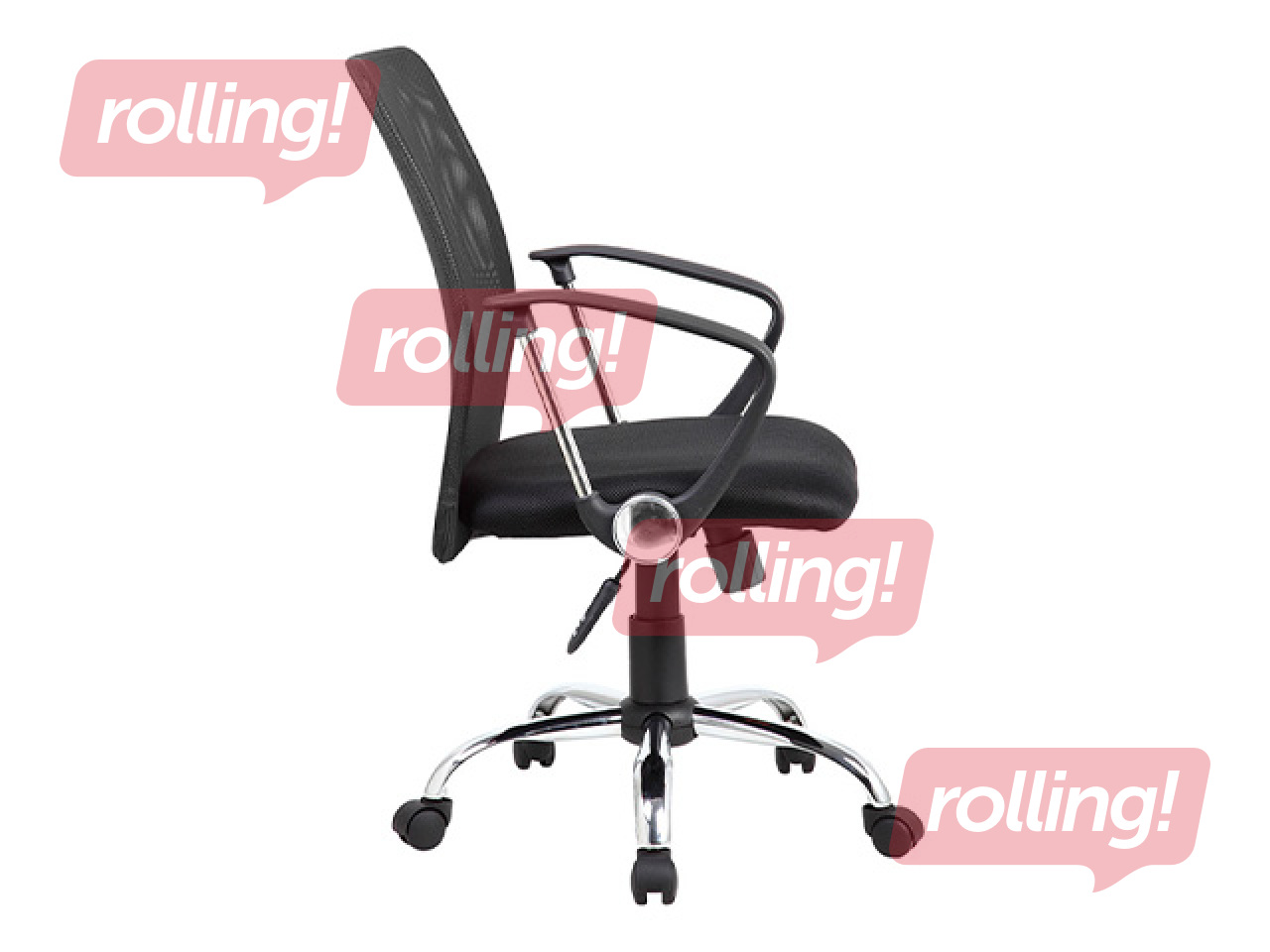 Kompakts biroja krēsls ar ergonomisku sieta atzveltni, kas nodrošina ventilāciju.