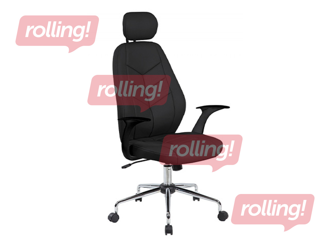 Griežams biroja krēsls ar ērtu atzveltni un integrētu galvas balstu.