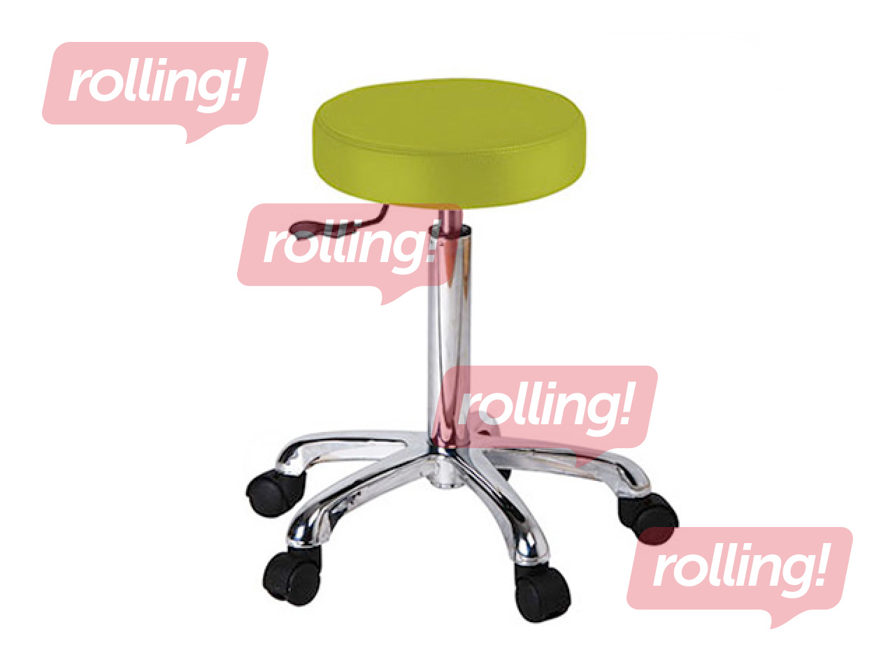Meistara krēsls Silver Fox ar plakanu, apaļu sēdekli ir ergonomiski veidots profesionāls sēdeklis bez atzveltnes, paredzēts salonu, kosmetoloģijas vai pedikīra darba zonām, kur svarīga brīva kustība un sēdekļa augstuma regulēšana. Tas aprīkots ar gāzes pacēlāju augstuma regulēšanai un stabilu hroma 5 riteņu bāzi, kas nodrošina vienmērīgu manevrētspēju darba laikā. Sēdekļa diametrs ir Ø34×7.5cm, bet augstuma regulācijas diapazons 53-73cm, ļaujot krēslu precīzi pielāgot individuālām vajadzībām, savukārt PU polsterējums un riteņu konstrukcija veicina komfortablu profesionālu lietošanu.