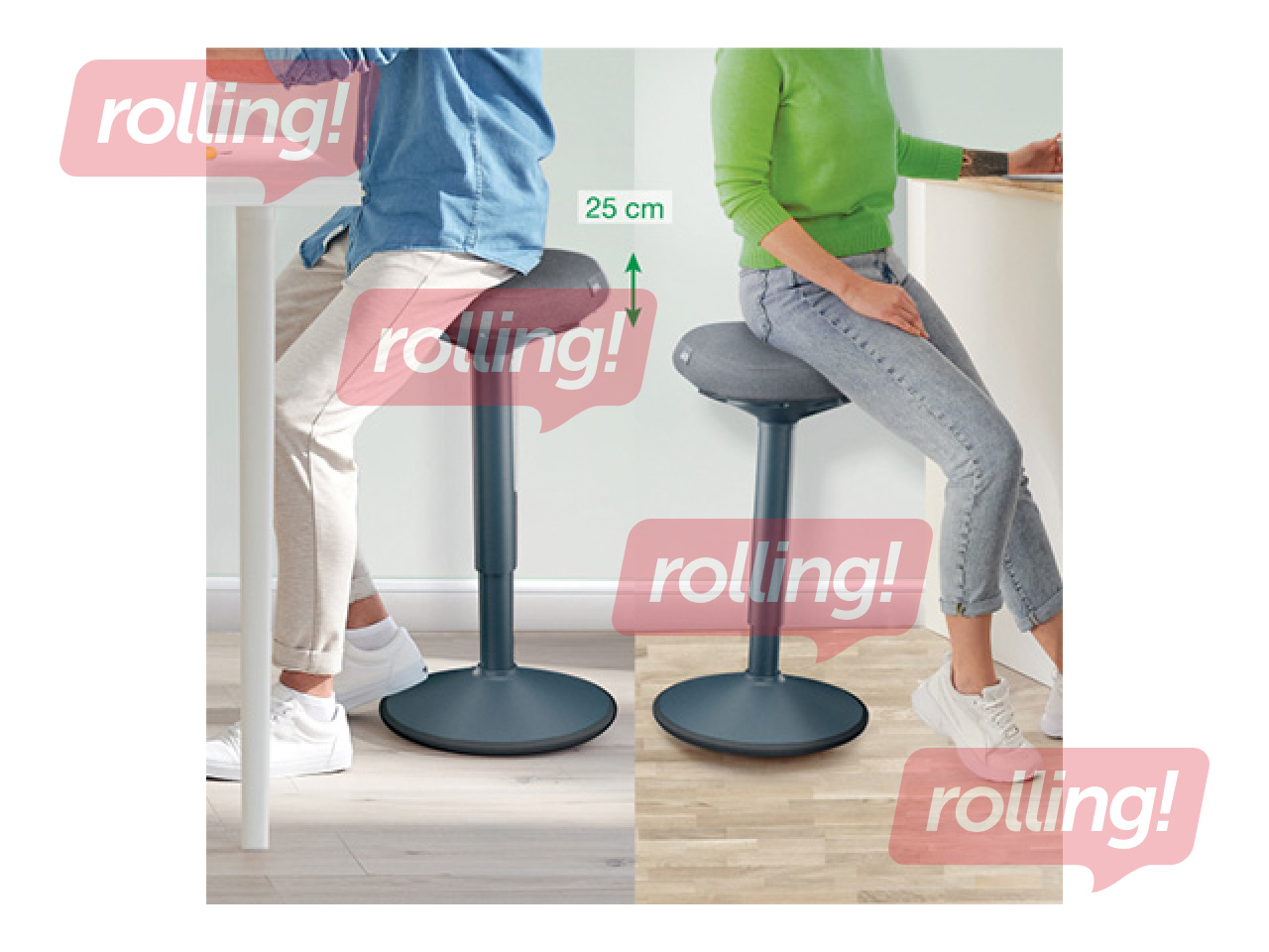 Stilīga un ergonomiska stāvstūle, kas palīdz uzturēt aktivitāti un nodrošina atbalstu, stāvot pie galda, kompakts dizains ļauj to novietot zem galda.