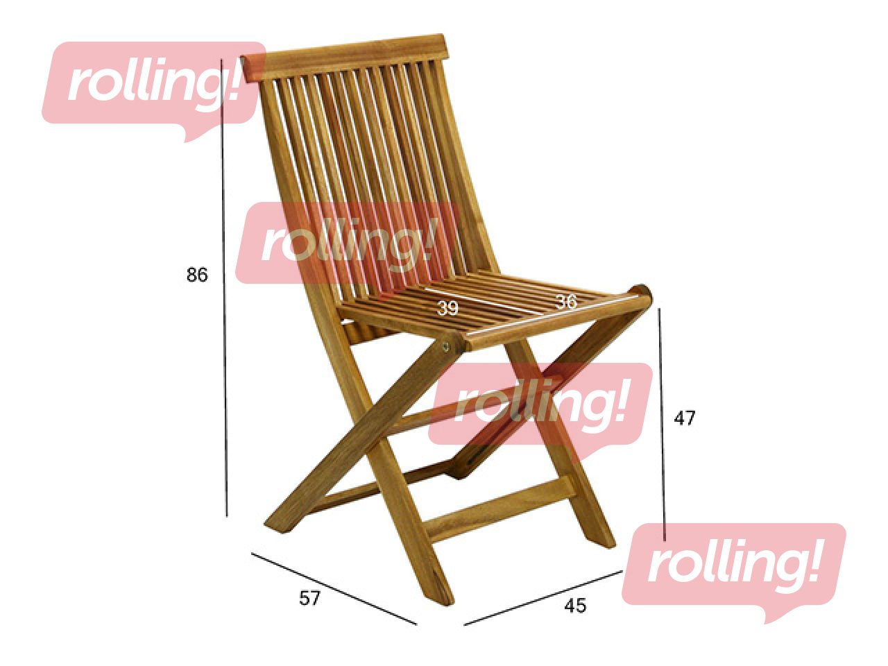 Klasiskais masīvkoka saliekamais dārza krēsls ir ērta un praktiska izvēle dārzam vai terasei. Tas izgatavots no akācijas koka un apstrādāts ar koksnes konservantu eļļu, kas nodrošina izturību un dabisku izskatu. Salocītā veidā krēsls aizņem maz vietas un ir viegli uzglabājams un pārvietojams. Kopējie izmēri: 45×57×H86cm; sēdekļa platums 36cm, sēdekļa dziļums 39cm, sēdekļa augstums 47cm, atzveltnes augstums 46cm. Maksimālā slodze: 90kg. Produkts ir piemērots lietošanai mainīgos laikapstākļos.