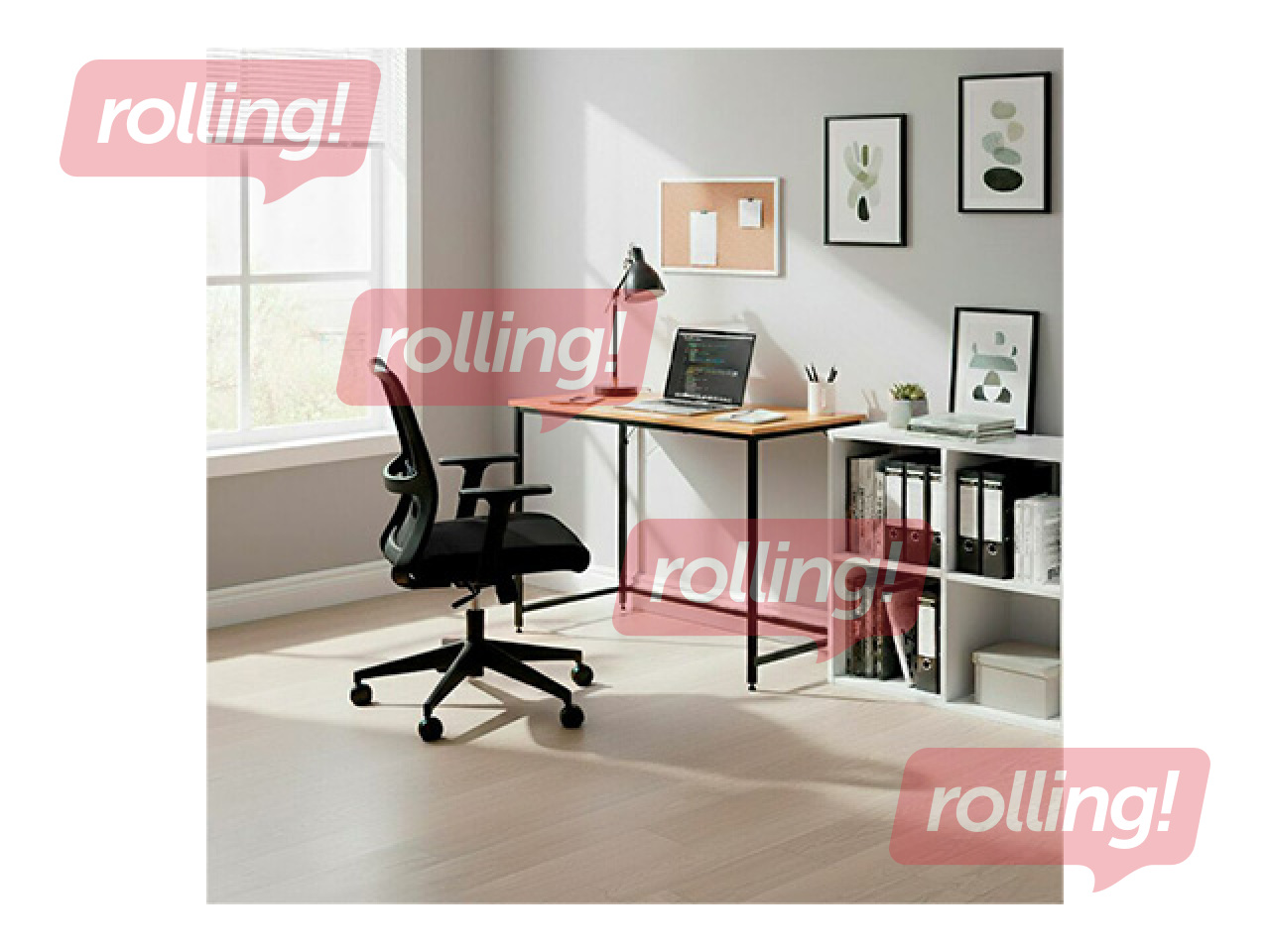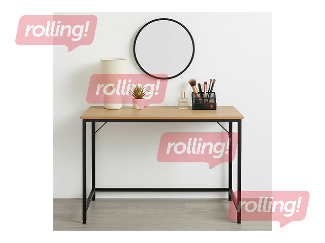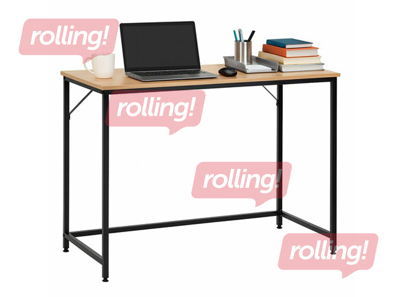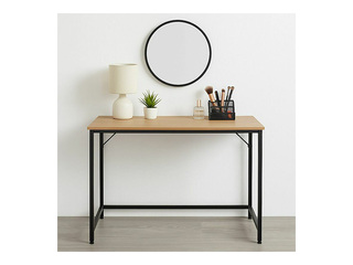 Biroja galds Springos, melns rāmis, koka toņa virsma, 100x50x76cm