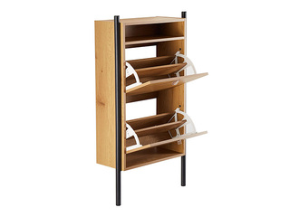 Šis apavu skapis apvieno praktisku uzglabāšanu ar vizuāli pievilcīgu dizainu, piedāvājot slēgtu vietu vairāku apavu pāru organizēšanai un kompaktus izmērus, kas piemēroti arī šaurākām telpām.