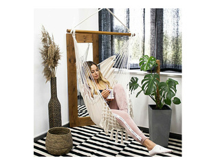 Piekaramais šūpuļkrēsls Springos Brazīlijas tipa paredzēts ērtai atpūtai dārzā, uz terases vai iekštelpās, nodrošinot komfortablu un relaksējošu sēdvietu.