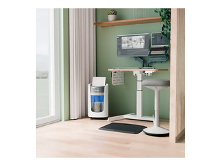 Leitz IQ OptiMax mājas biroja dokumentu sasmalcinātājs piedāvā inovatīvu, stilīgu dokumentu sasmalcināšanas risinājumu, nodrošinot izcilu dokumentu drošību un mieru. Šis augstas drošības DIN P5 dokumentu sasmalcinātājs vienā reizē viegli sasmalcina līdz pat 6 A4 lapas mikro gabaliņos, padarot to par ideālu mazu sasmalcinātāju personiskai un mājas biroja lietošanai. Leitz dokumentu sasmalcinātājs, kas aprīkots ar unikālo atkritumu tvertnes rotācijas tehnoloģiju (BRT), palielina tvertnes ietilpību par +45 %*. Rotējošā tvertne nodrošina vienmērīgu papīra sadali, novēršot papīra uzkrāšanos un ļaujot sasmalcināt papildu 70 A4 lapas, pirms tvertne jāiztukšo. Ar BRT nav nepieciešams izņemt vai sakratīt tvertni — indikators „tvertne pilna” aktivizējas tikai tad, kad tvertne ir piepildīta 100 % apmērā. 15 l atkritumu tvertne ietilpina līdz 225 A4 formāta lapām, un tās izmantošanas laikā to apgaismo stilīga zila gaisma, uzlabojot dokumentu sasmalcināšanas pieredzi. Intuitīvs LED displejs sniedz skaidras brīdinājuma indikācijas par atkritumu tvertnes piepildīšanu, durvju atvēršanu, pārkaršanu un pārslodzi, nodrošinot vienmērīgu un nevainojamu darbību. Leitz IQ OptiMax 225 biroja dokumentu sasmalcinātājs ir paredzēts mājas darba vietām un darbojas ļoti klusi, lai minimizētu traucējumus, tādēļ tas ir ideāli piemērots koplietošanas telpām. Tā gludais, kompaktais dizains viegli iekļaujas jebkurā telpā, ērti iederoties mazākās telpās, nezaudējot veiktspēju. Ar 20 minūšu nepārtrauktu darbības laiku šis dokumentu sasmalcinātājs nodrošina uzticamu un drošu dokumentu sasmalcināšanu ikdienas dokumentu iznīcināšanai. Balta krāsa.