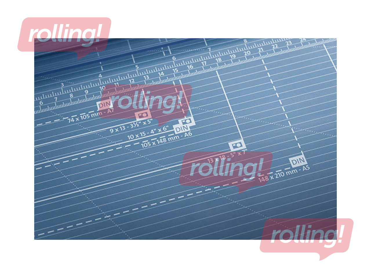 Noderīgas formāta līnijas uz pamatnes ar mm sadalījumu gar griešanas malu atvieglo griežamā materiāla izlīdzināšanu