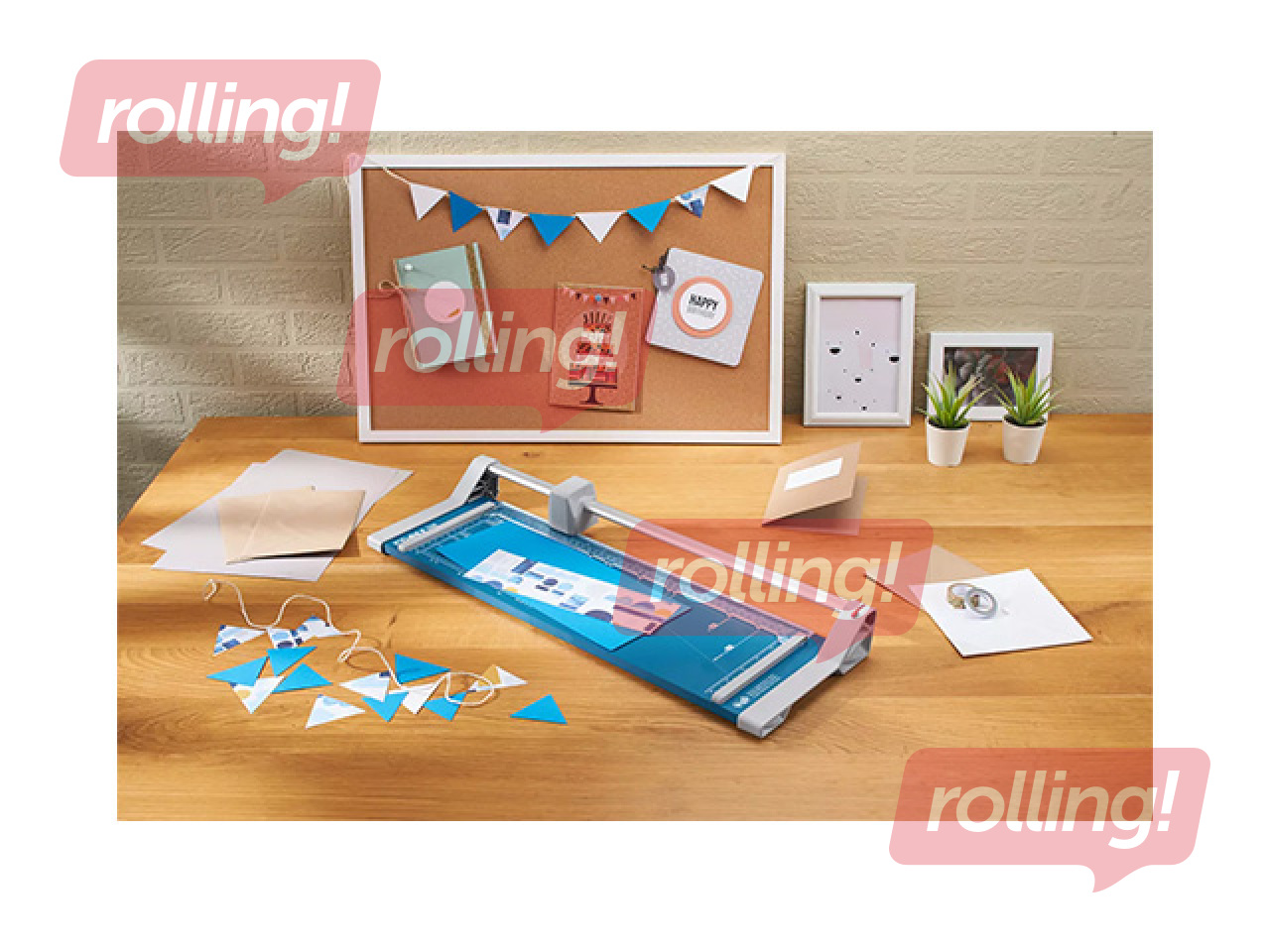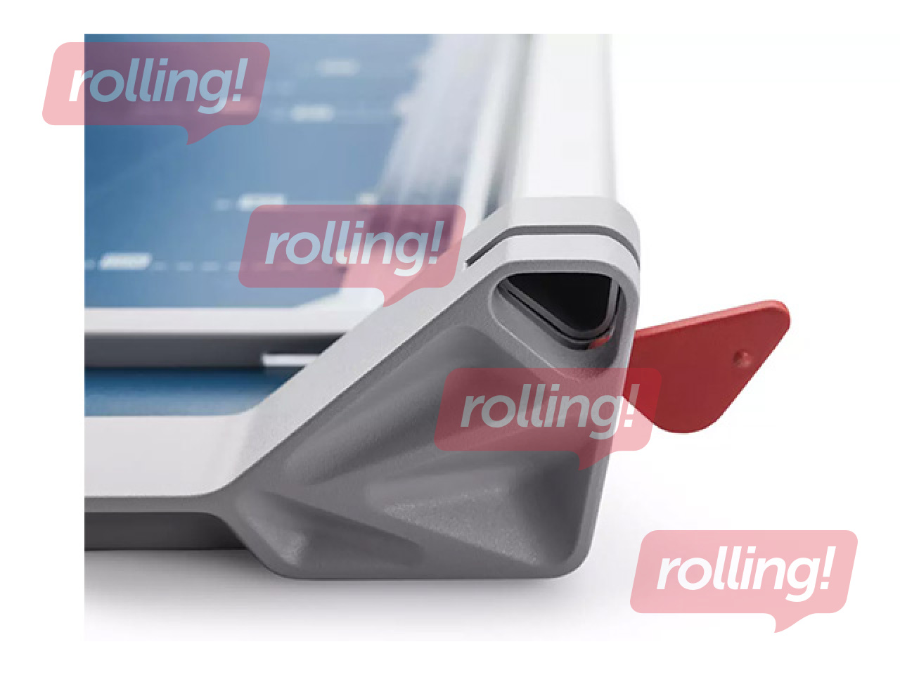 Tas ir aprīkots ar metāla pamatni ar neslīdošām gumijas kājām un pašasinošu tērauda rotējošo asmeni drošā griešanas galvā. Ierīcei ir mm mērogs un formāta līnijas precīzai materiāla novietošanai, automātiska piespiešanas sliede materiāla fiksēšanai un divas mērlīnijas 90° griezumam, kas atvieglo precīzu darbu. Griešanas galvu iespējams vienkārši nomainīt.