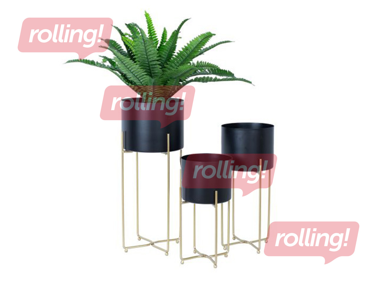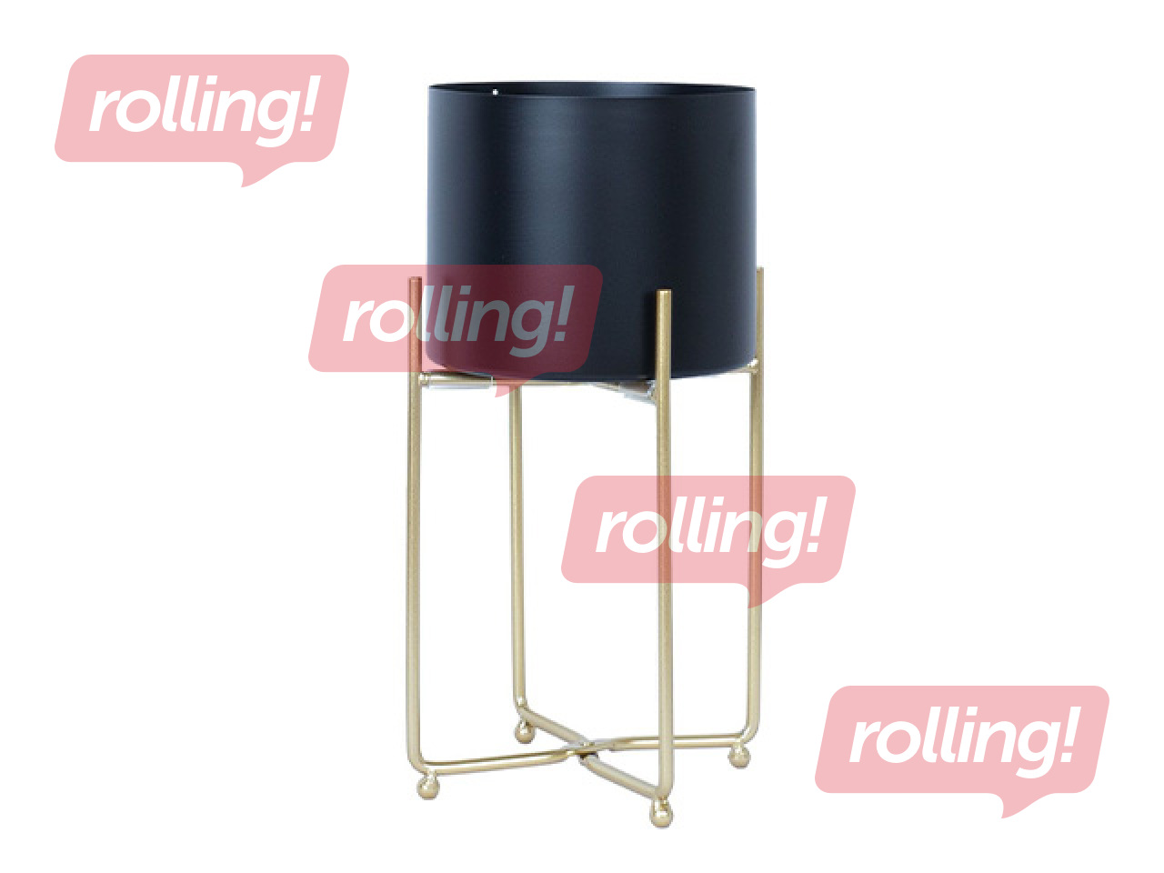 Dekoratīvais puķu pods Deia Black S, ar statīvu, metāla, melns, 19.5x18x37cm