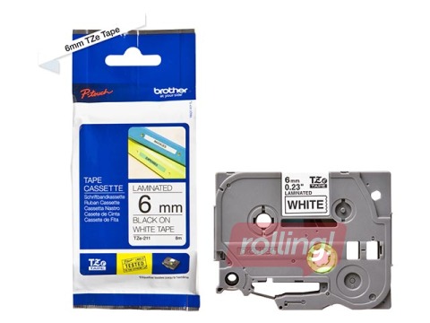 Lente Brother TZe-211, Melns uz balta, 6mm, 8 m, laminēta