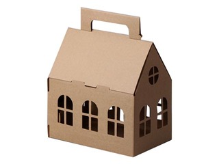 Dāvanu kastīte Ziemassvētku mājiņa, 200x130x120(+90)mm, kartona, brūna