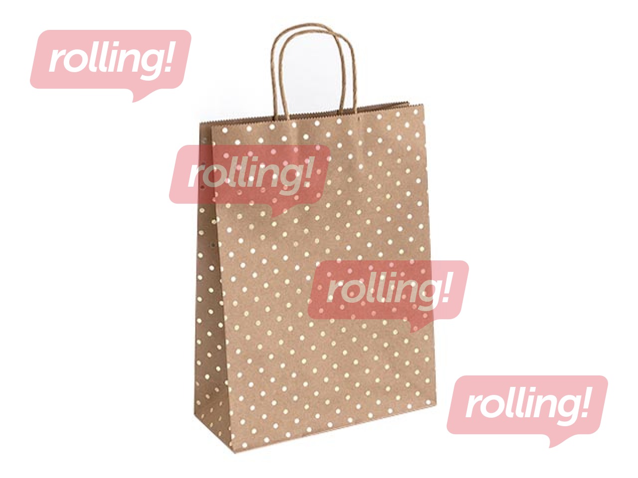 Papīra maisiņš ar rokturiem, 200x100x250mm, brūns ar zelta punktiņiem, 5 gab