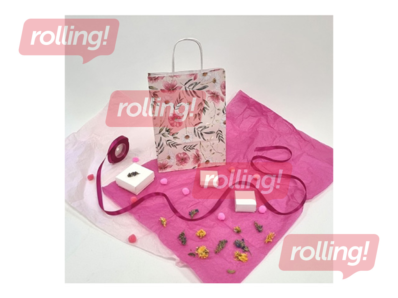 Dāvanu maisiņš ar vītu rokturi un dizainu, 220x100x310mm