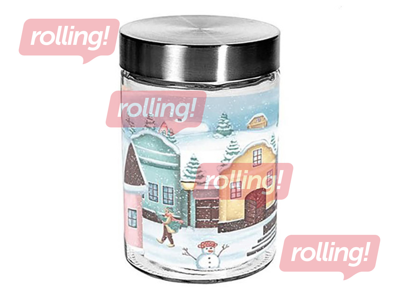 Elegants un praktisks Toro stikla uzglabāšanas trauks ar pilsētas dizaina vāku — ideāls risinājums produktu, saldumu vai beramo preču glabāšanai.