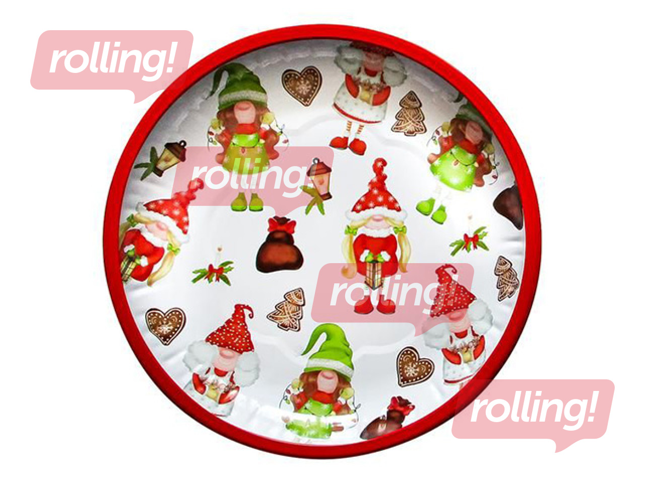 Skaista Toro metāla paplāte ar jautru “Ziemassvētku rūķu” dizainu, kas piešķir svētku galdam siltu un priecīgu noskaņu. Lieliski piemērota saldumu, augļu vai dzērienu pasniegšanai, kā arī dekoratīvam noformējumam. Izgatavota no izturīga metāla ar kvalitatīvu apdruku.