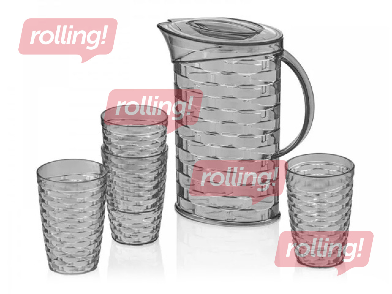 Komplektā ietilpst krūze ar tilpumu 2 litri un 4 glāzes pa 350ml.