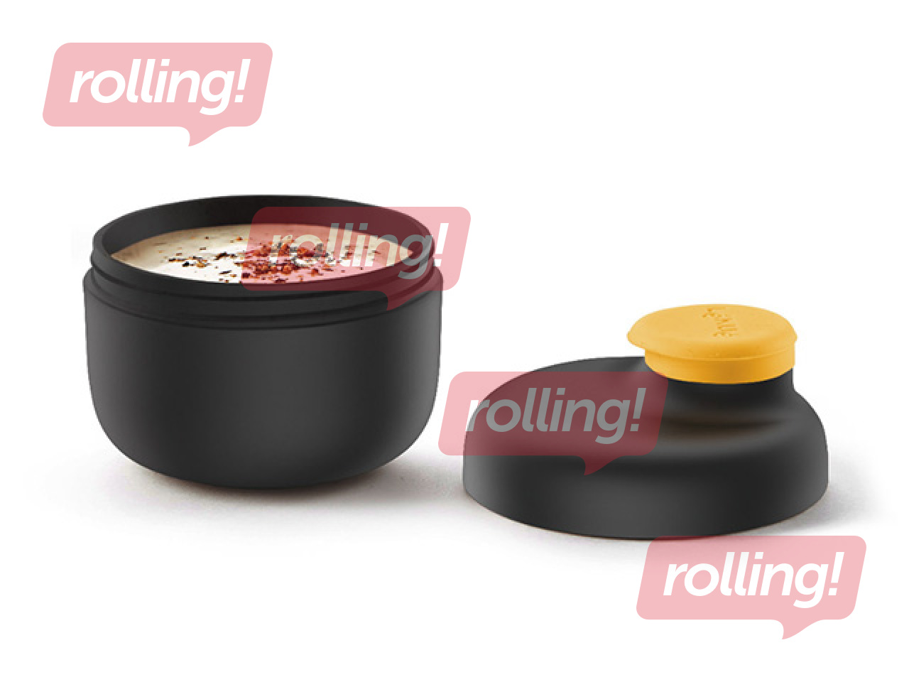 Plašā, vītņotā atvere nodrošina ērtu uzpildīšanu, bet pretpilēšanas sistēma ļauj lietot trauku tīri un ērti. Izgatavots no izturīgiem, ikdienas lietošanai paredzētiem materiāliem, tas ir drošs lietošanai mikroviļņu krāsnī (līdz 3 minūtēm).