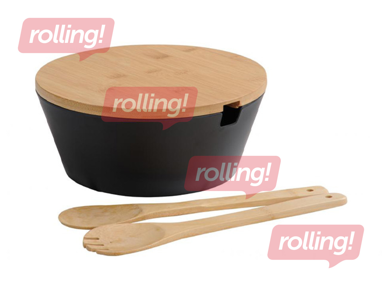 Lieliski piemērota salātu pasniegšanai. Bļoda izgatavota no melamīna, vāks un salātu karotes — no bambusa. FSC sertificēta. Nav piemērota mazgāšanai trauku mazgājamā mašīnā.
