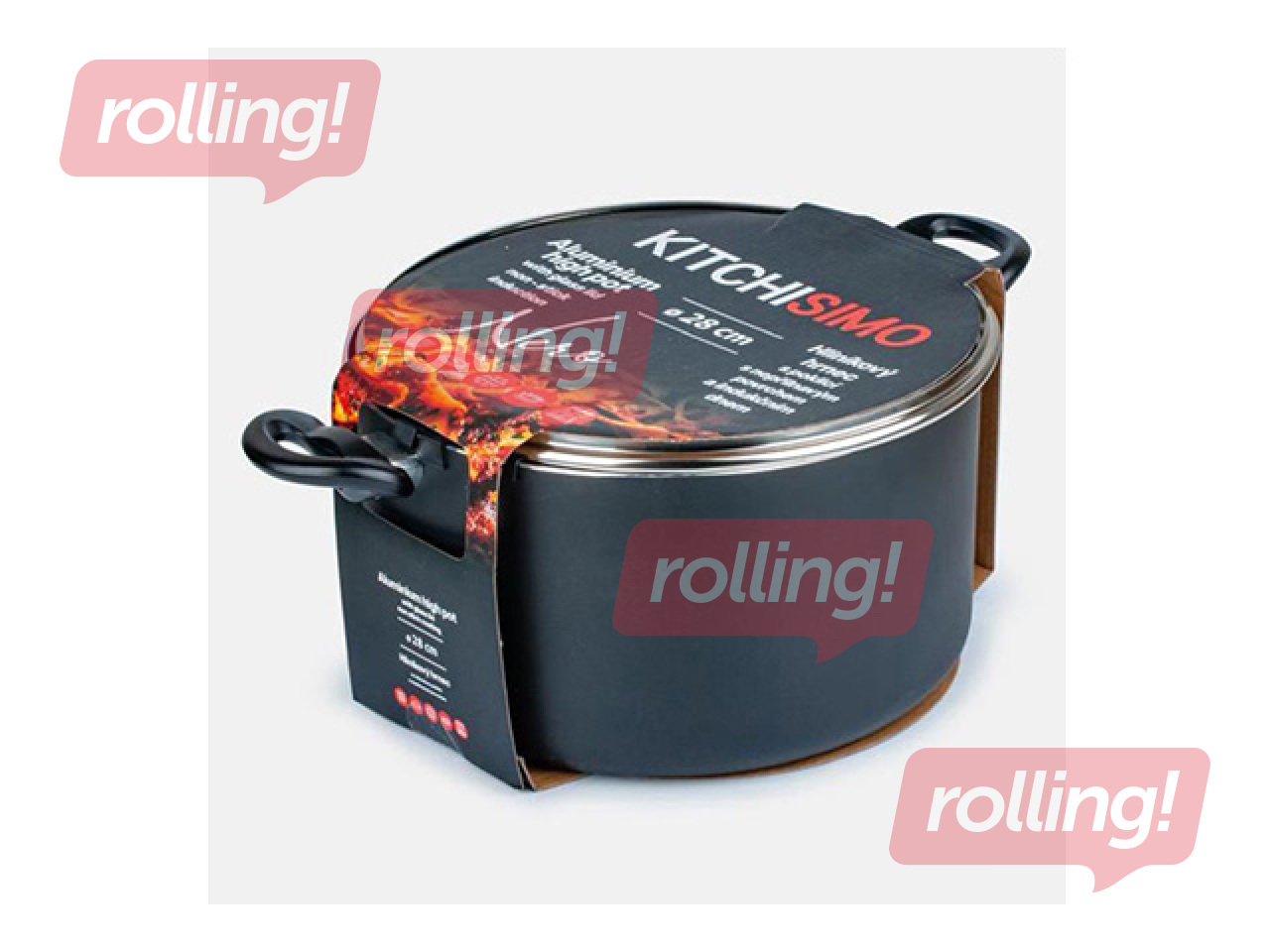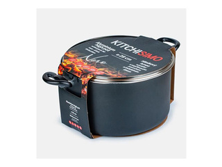 Kitchisimo katls ar vāku ir izgatavots no izturīga alumīnija ar non-stick pārklājumu, kas nodrošina ērtu gatavošanu un vieglu tīrīšanu. Tilpums 8,5 L un diametrs 28 cm padara to piemērotu lielākai maltītei vai sautējumu gatavošanai.