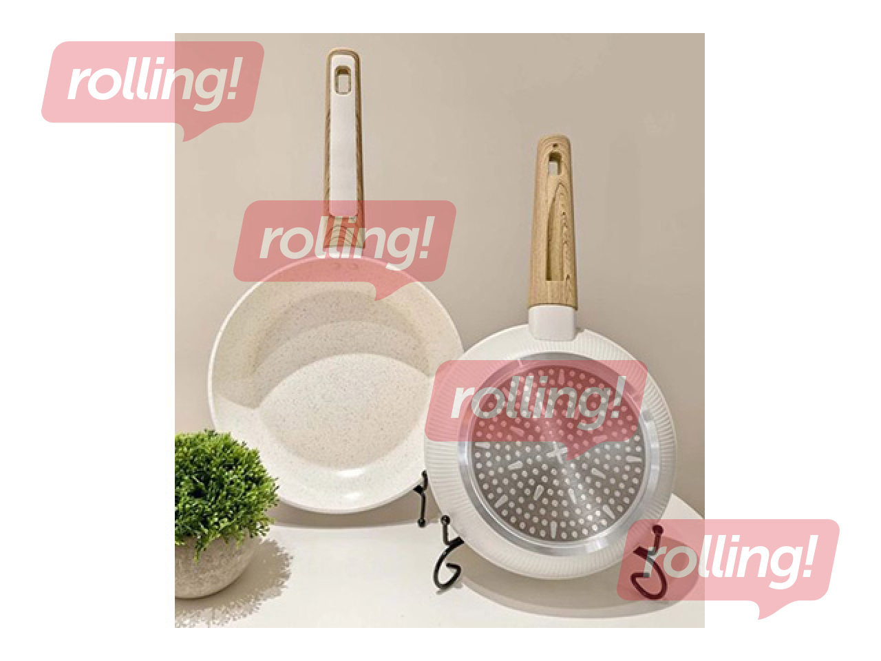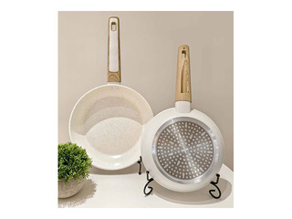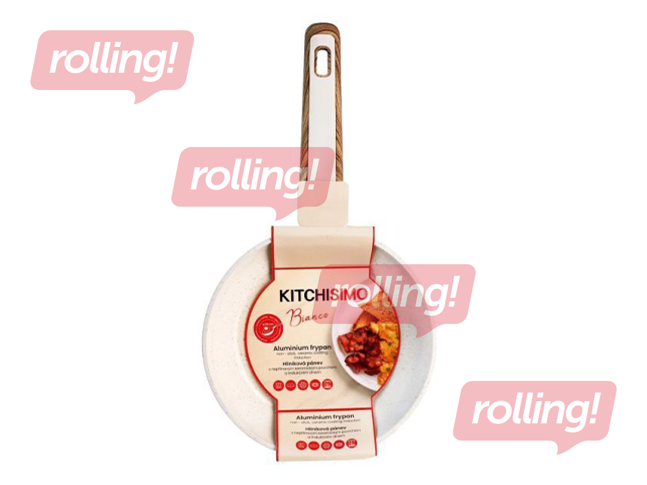 Eleganta un praktiska Kitchisimo Bianco panna ar izturīgu alumīnija korpusu un keramikas pretpiedeguma pārklājumu, kas ļauj gatavot veselīgāk, izmantojot mazāk eļļas. Pannai ir ērts bakelīta rokturis ar koka efekta apdari, kas neuzkarst un nodrošina drošu satvērienu.