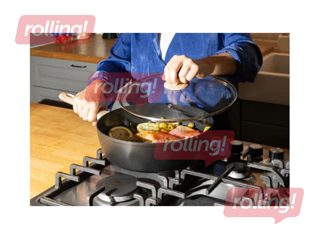 Dziļā Pyrex Cook&Care panna ar vāku ir paredzēta daudzveidīgai ikdienas gatavošanai – sautēšanai, cepšanai un ēdieniem ar mērci. Tā ir izgatavota no pārstrādāta alumīnija un aprīkota ar augstas kvalitātes keramikas non-stick pārklājumu bez PFAS, kas nodrošina veselīgāku ēdiena pagatavošanu un vieglu kopšanu. Ergonomiskais bakelīta rokturis ar koka efektu ir ērts un drošs lietošanā.