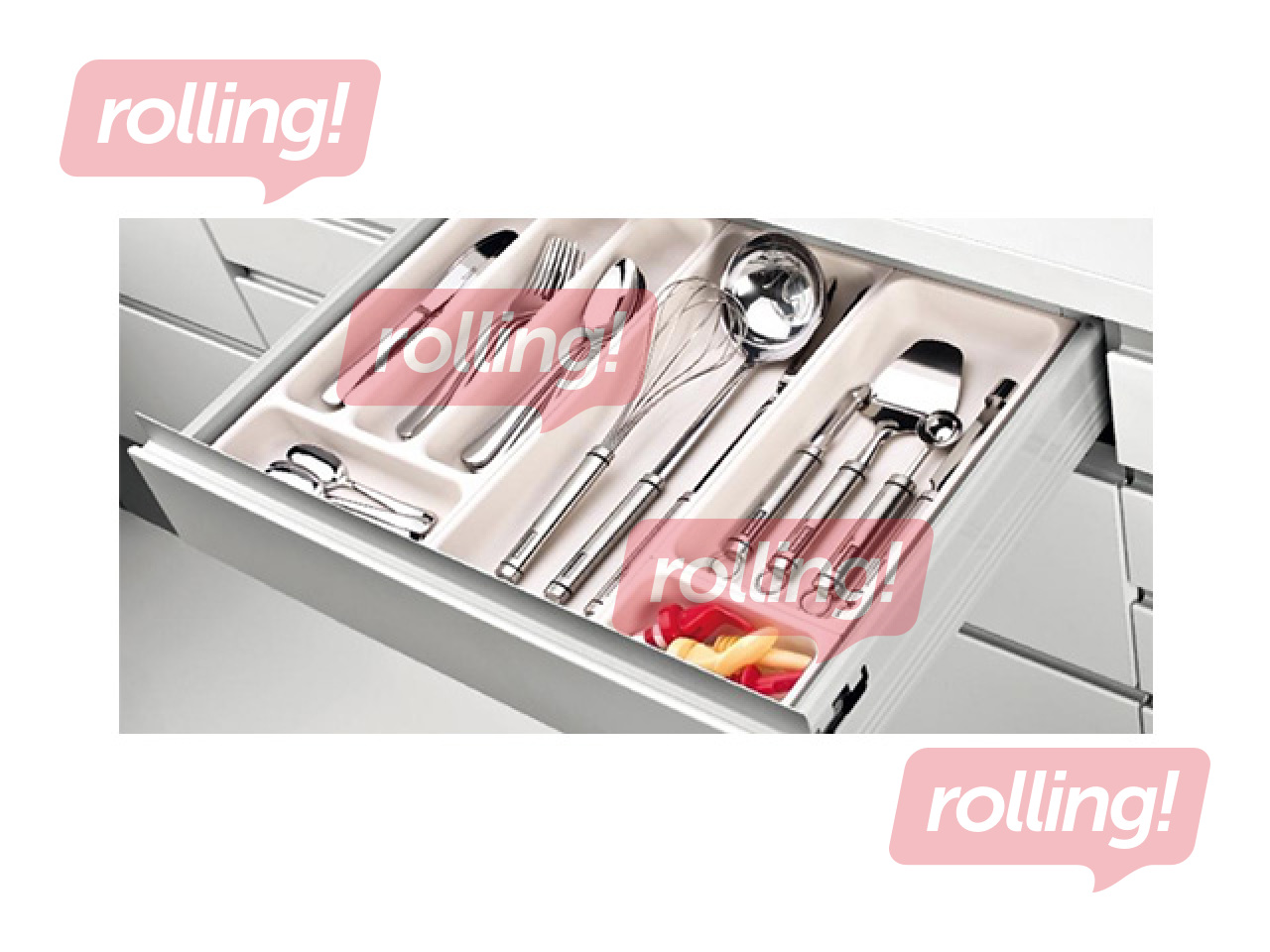 Lieliski piemērots galda piederumu organizētai glabāšanai. Galda piederumu organizatoru var viegli savienot kopā ar citām FlexiSpace organizatoriem, lai vislabāk izmantotu vietu virtuves skapīša atvilktnēs. Izgatavots no pirmklasīgas izturīgas plastmasas. Aprīkots ar neslīdošām kājiņām un savienotājiem.
