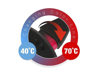 Indikators pakāpeniski maina krāsu no melnas līdz spilgti sarkanai. Krāsas maiņa sākas pie 40°C, savukārt spilgti sarkanā krāsa norāda, ka panna ir uzkarsēta līdz 70°C un ir gatava cepšanai.