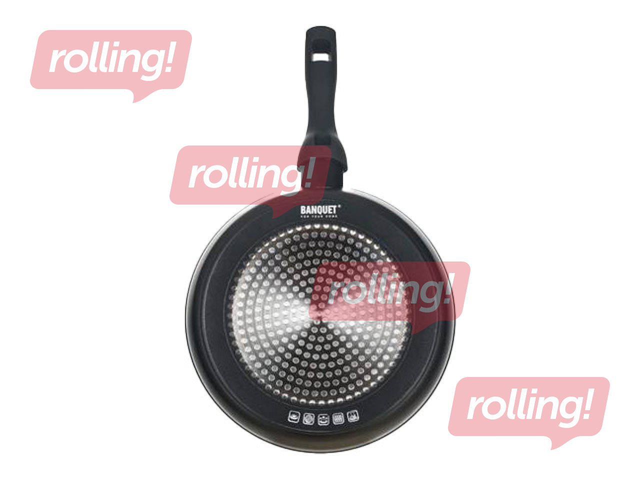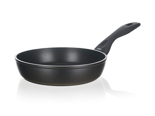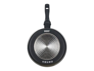 Banquet Grazia panna ar Ø24cm diametru un 5.5cm dziļumu ir izgatavota no alumīnija ar nepiedegošu pārklājumu, kas nodrošina ātru un vienmērīgu siltuma sadali un ļauj gatavot ar mazāku tauku daudzumu. Panna ir universāli izmantojama ikdienas ēdienu cepšanai, piemērota gāzes, elektriskajām un keramikas plītīm, kā arī ērta lietošanā un viegli tīrāma. Pateicoties praktiskajam izmēram un vienkāršajam dizainam, tā ir uzticams virtuves palīgs dažādu ēdienu pagatavošanai.