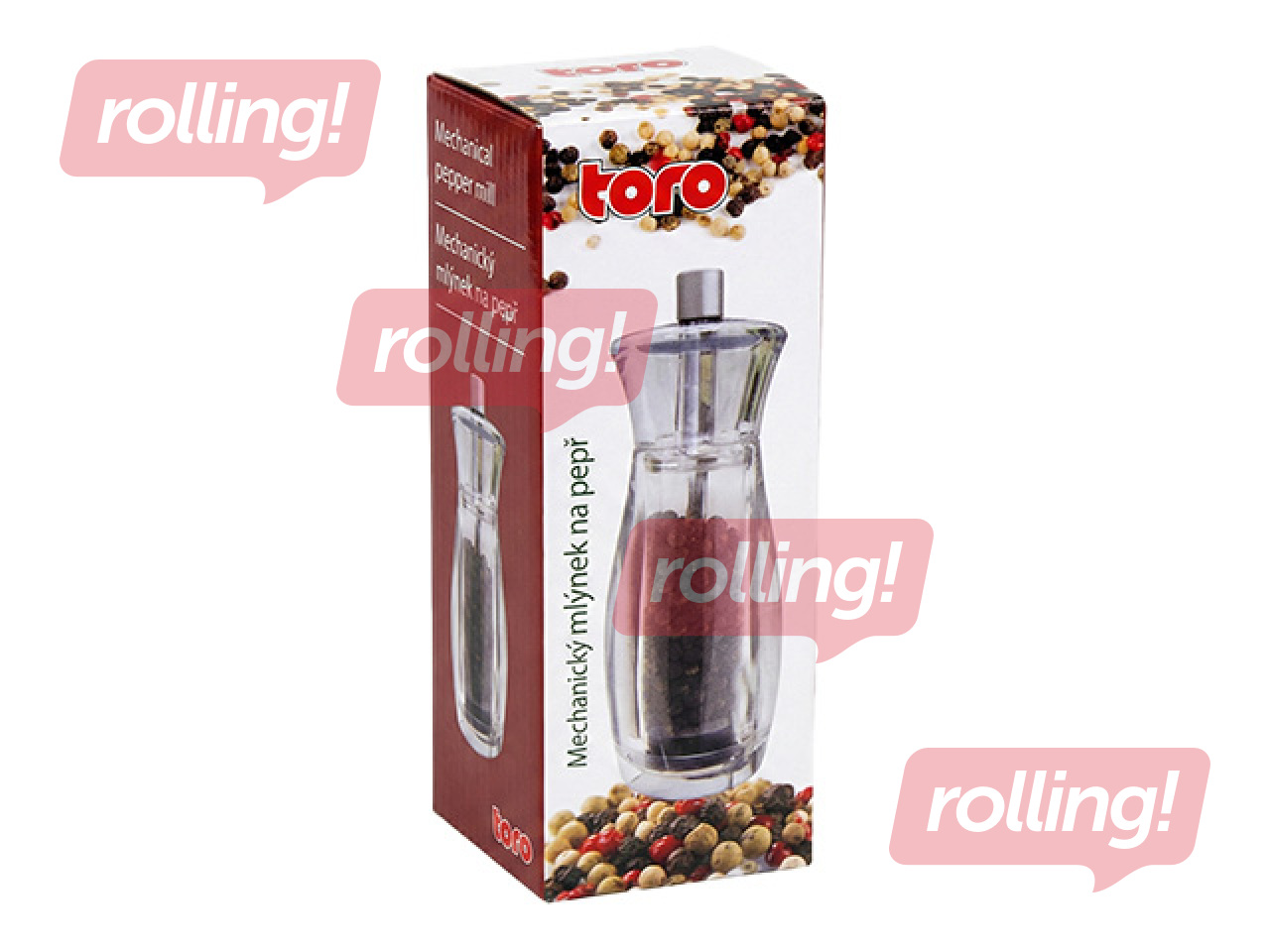 Mehāniskās piparu dzirnaviņas Toro paredzētas svaigu piparu malšanai un garšas izcelšanai ēdiena gatavošanas vai pasniegšanas laikā. Tās ir izgatavotas no plastmasas un metāla, nodrošinot izturīgu konstrukciju ikdienas lietošanai. Dzirnaviņu izmērs ir Ø5x14cm.