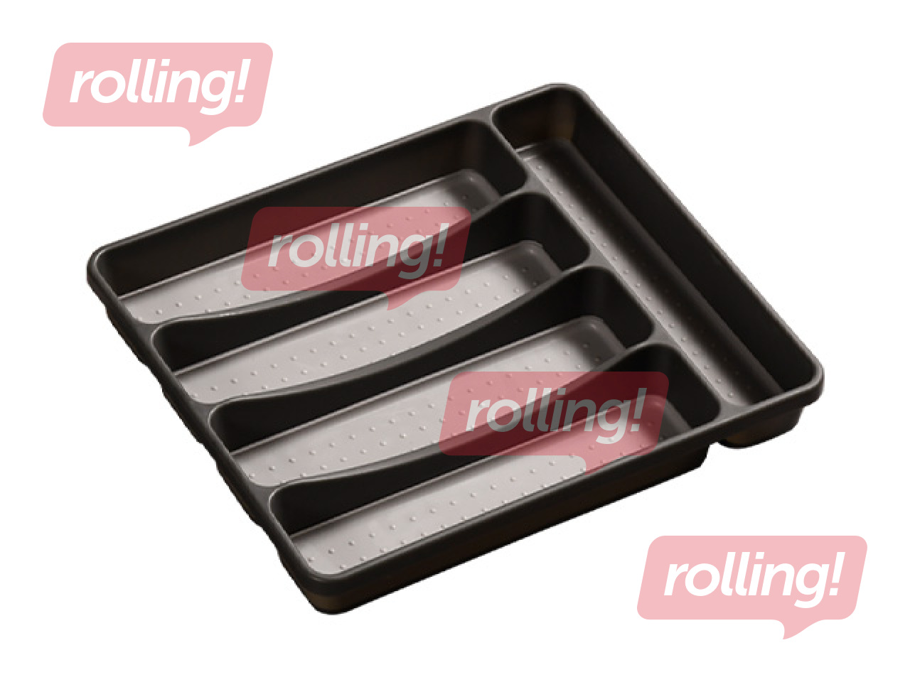 Praktisks melns "Kesper" galda piederumu organizators (32,3 x 29,5 x 4,5 cm). Tas ir lieliski piemērots ērtai galda piederumu un citu virtuves rīku šķirošanai, palīdzot uzturēt perfektu kārtību virtuves atvilktnēs.