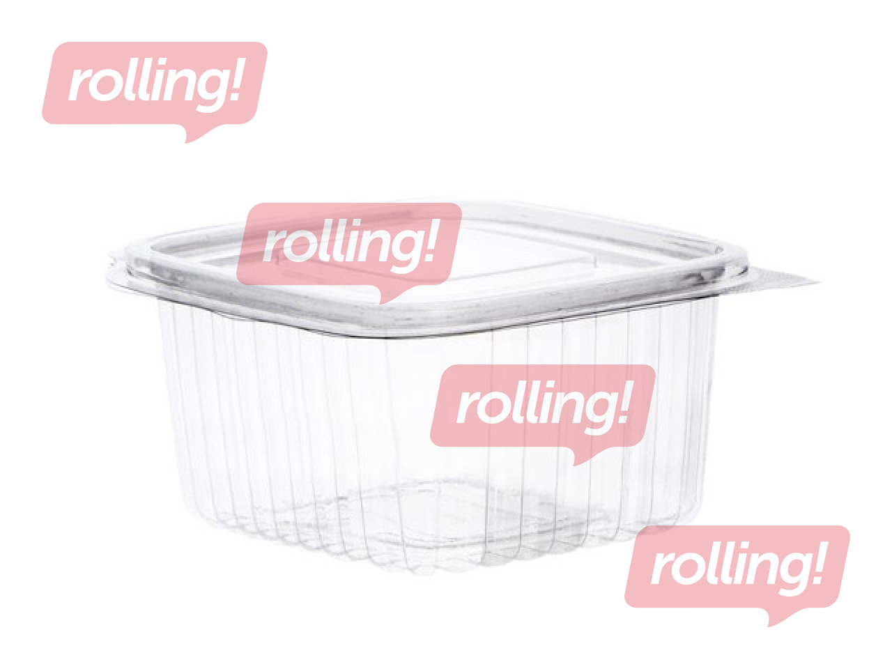 Vienreizlietojamās plastmasas kārbas. Izgatavotas no PET.