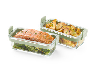 Praktisks un elegants Lékué stikla trauku komplekts paredzēts lietošanai karstā gaisa katlos no 5 litriem. Komplektā ietilpst divi borosilikāta stikla trauki ar neslīdošiem Platinum silikona rokturiem, kas nodrošina drošu un ērtu lietošanu.