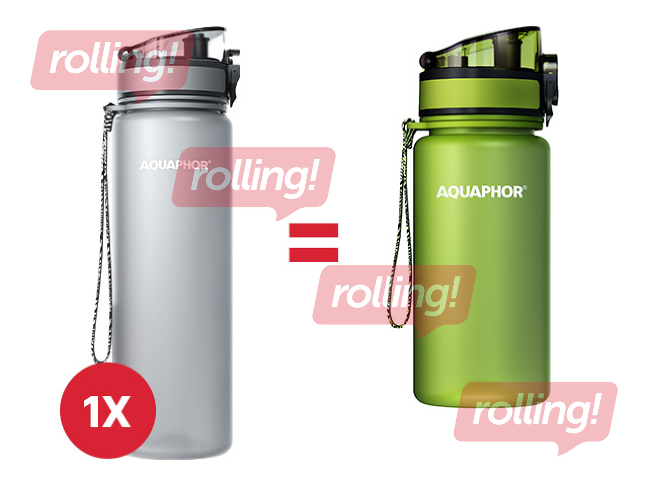 Pērc ūdens pudeli ar filtru Aquaphor City, 800ml, pelēkā krāsā un saņem ūdens pudeli ar filtru Aquaphor City, zaļā krāsā, 350ml dāvanā!
