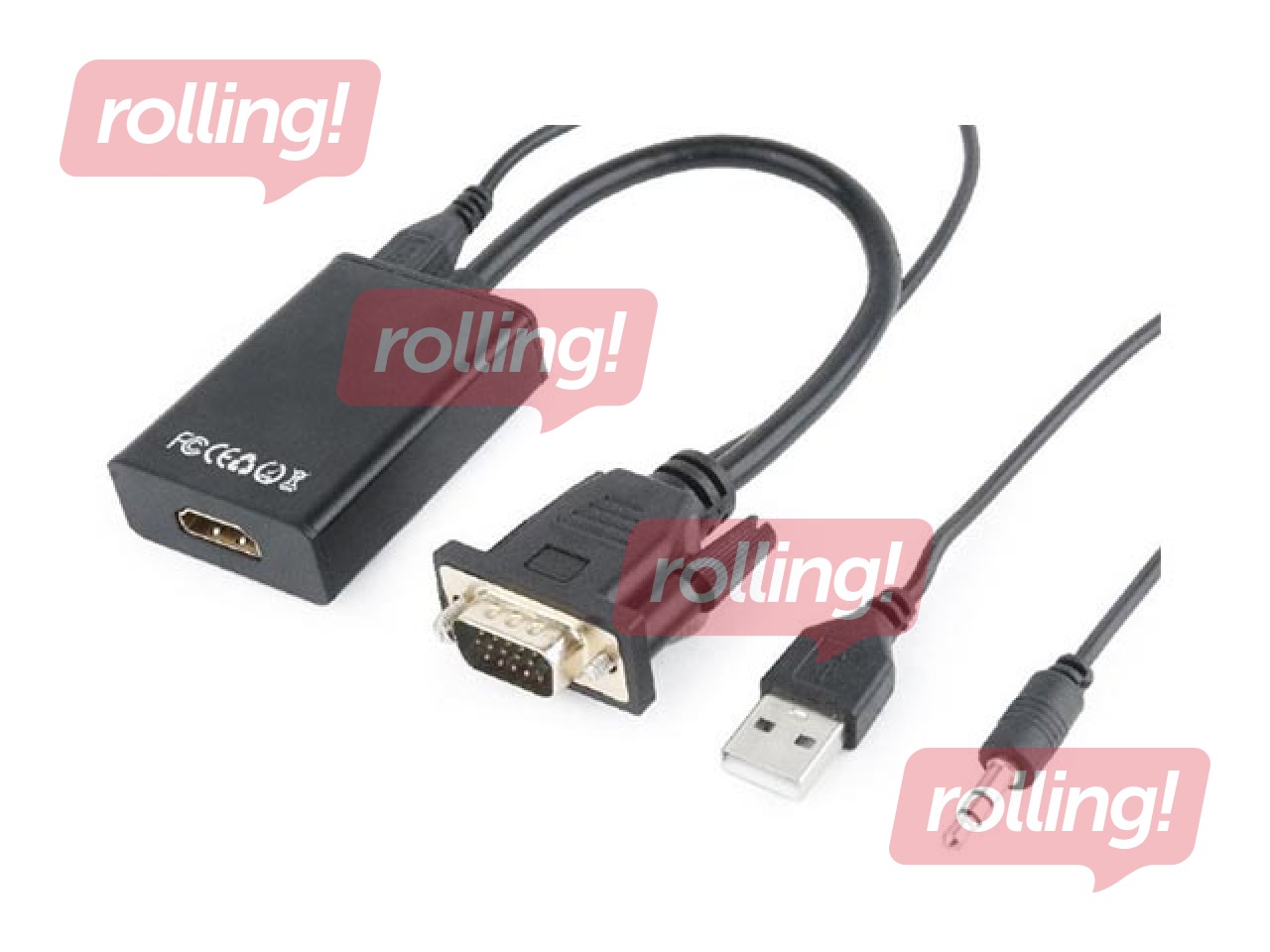 Adapteris Gembird VGA to HDMI adapter cable, 0.15 m, black